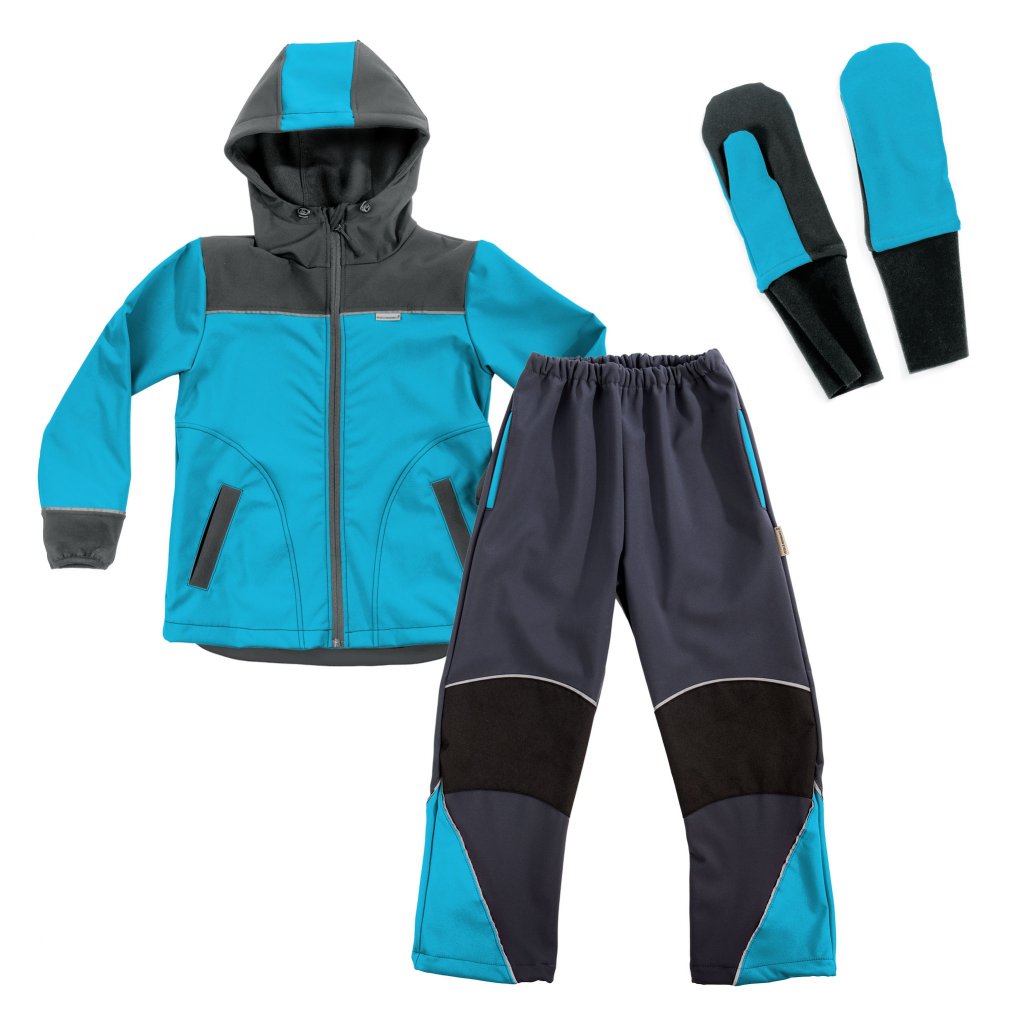 Dětská softshellová souprava celoroční šedo-tyrkysová - rukavice ZDARMA!