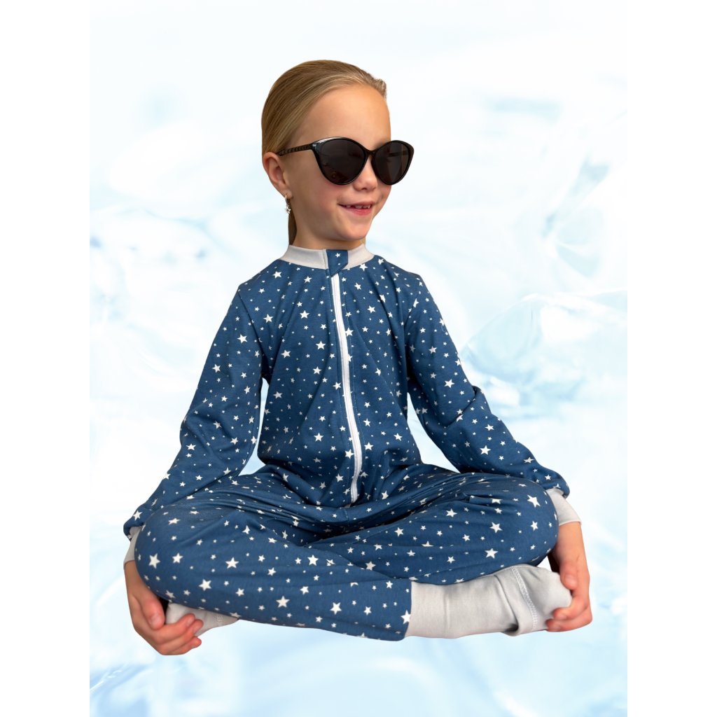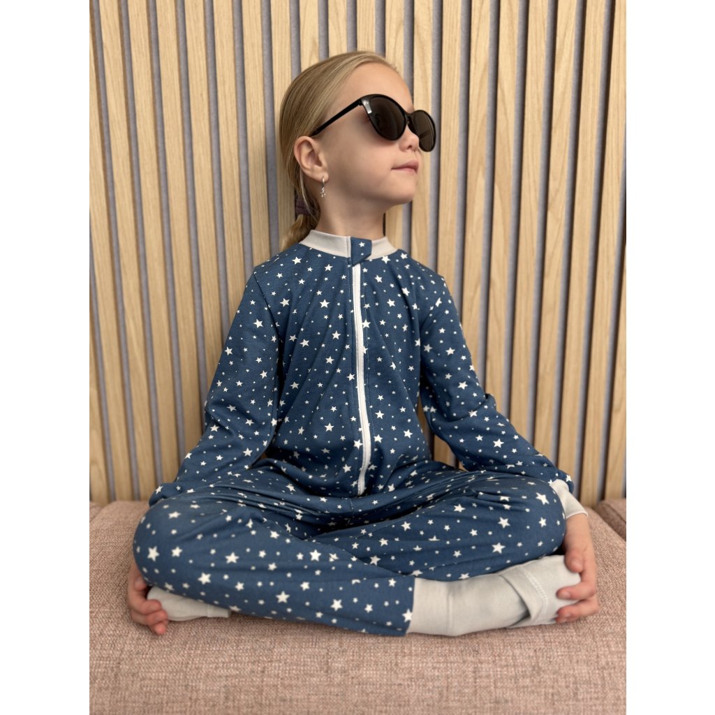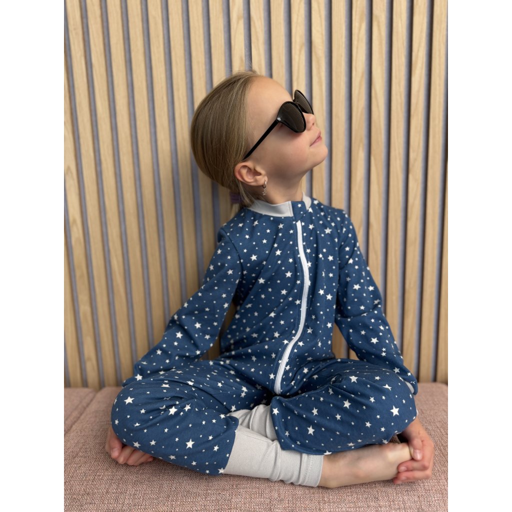 Dětské pyžamo overal s ťapičkami Hvězdy modrý