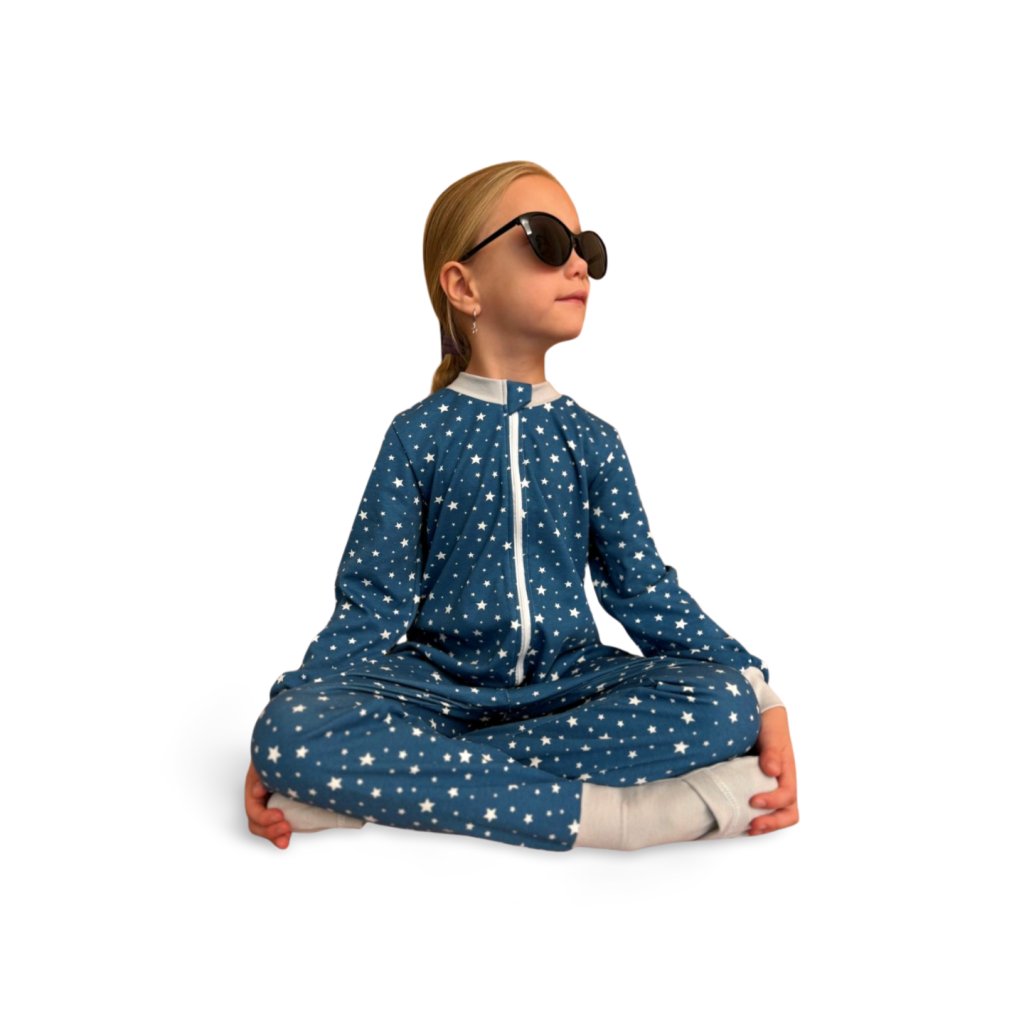 Nejen miminka chtějí na spaní overaly. Bavlněný spací overal se "svlékacími tlapkami" - přehrnou se snadno přes prsty na nohou a vytvoří ponožku. Nebo je naopak můžete vytáhnout a nosit přes kotníky. Rozepínání na zip, pohodlný střih. Netáhne v něm na záda.