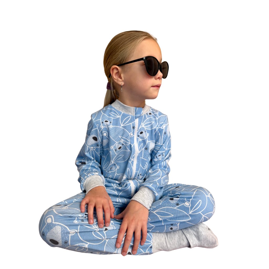 Nejen miminka chtějí na spaní overaly. Bavlněný spací overal se "svlékacími tlapkami" - přehrnou se snadno přes prsty na nohou a vytvoří ponožku. Rozepínání na zip, pohodlný střih. Netáhne v něm na záda.