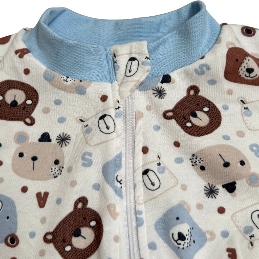 Nejen miminka chtějí na spaní overaly. Bavlněný spací overal se "svlékacími tlapkami" - přehrnou se snadno přes prsty na nohou a vytvoří ponožku. Nebo je naopak můžete vytáhnout a nosit přes kotníky. Rozepínání na zip, pohodlný střih. Netáhne v něm na záda.