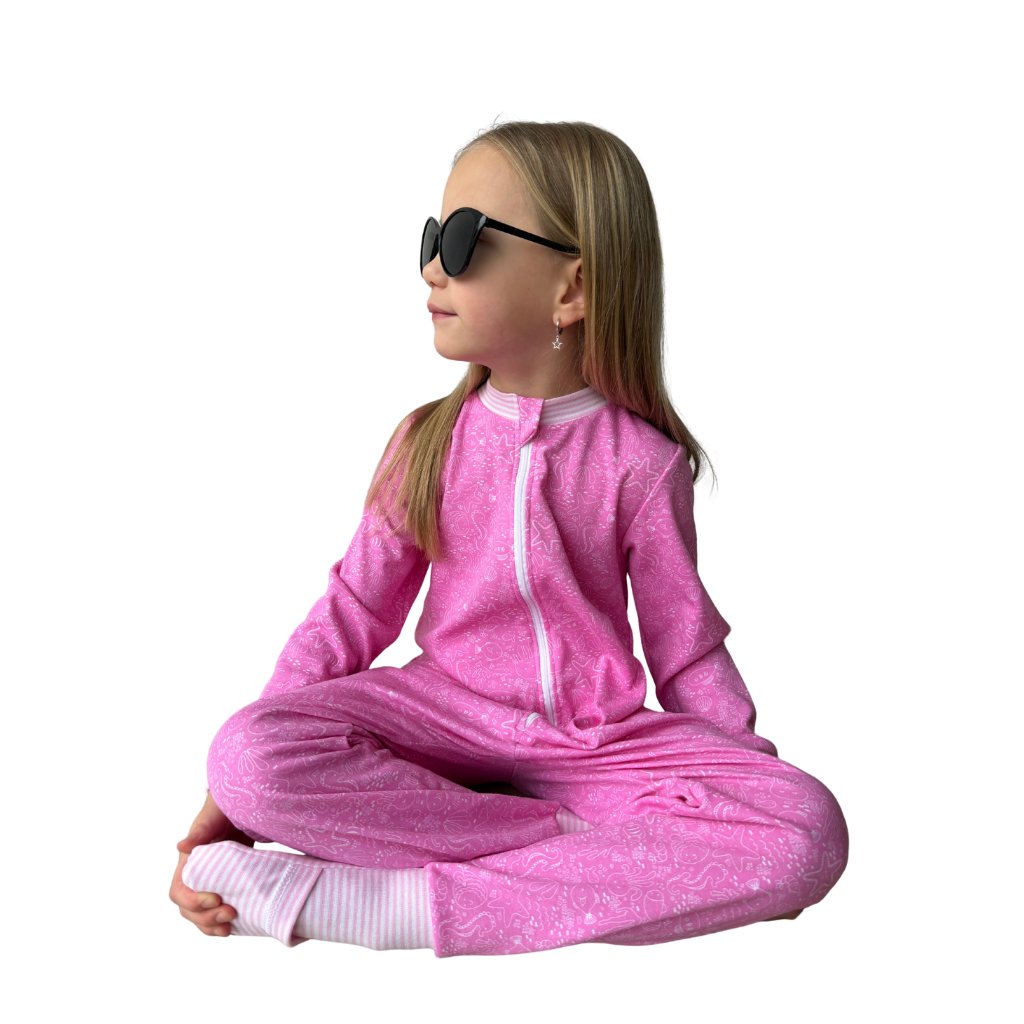 Nejen miminka chtějí na spaní overaly. Bavlněný spací overal se "svlékacími tlapkami" - přehrnou se snadno přes prsty na nohou a vytvoří ponožku. Nebo je naopak můžete vytáhnout a nosit přes kotníky. Rozepínání na zip, pohodlný střih. Netáhne v něm na záda.