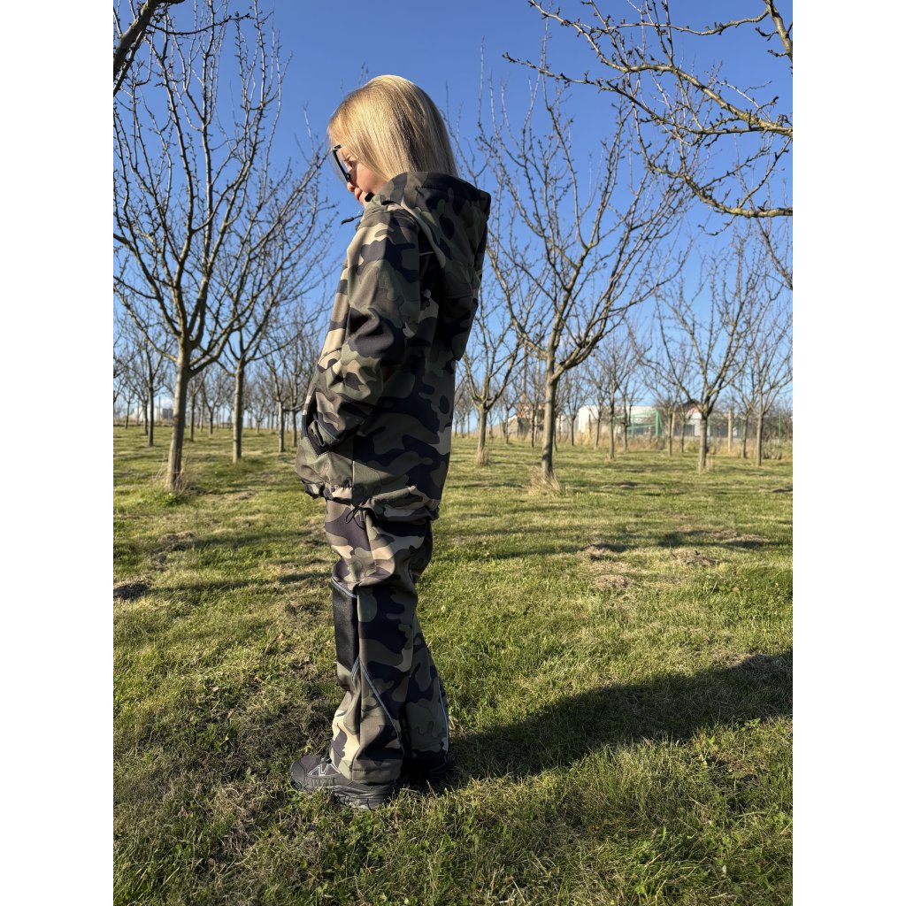 Dětské softshellové kalhoty celoroční zelený maskáč II
